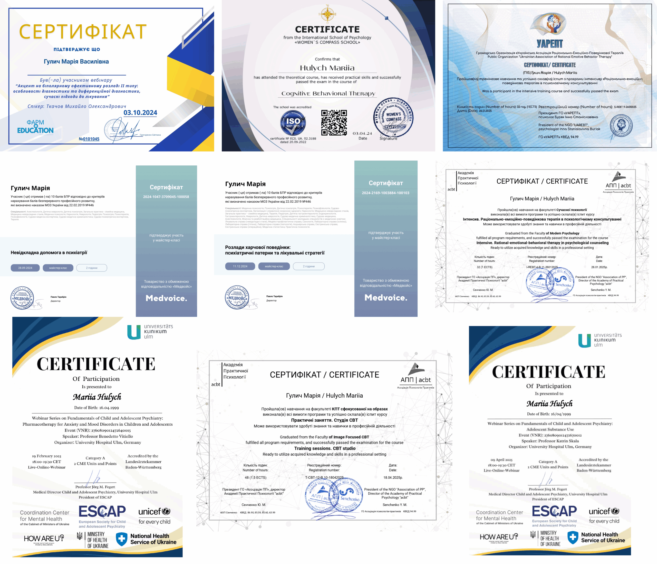 Марія Василівна Гулич – лікар-психіатр з глибоким розумінням людської природи, що ґрунтується як на професійній освіті, так і на постійному саморозвитку.